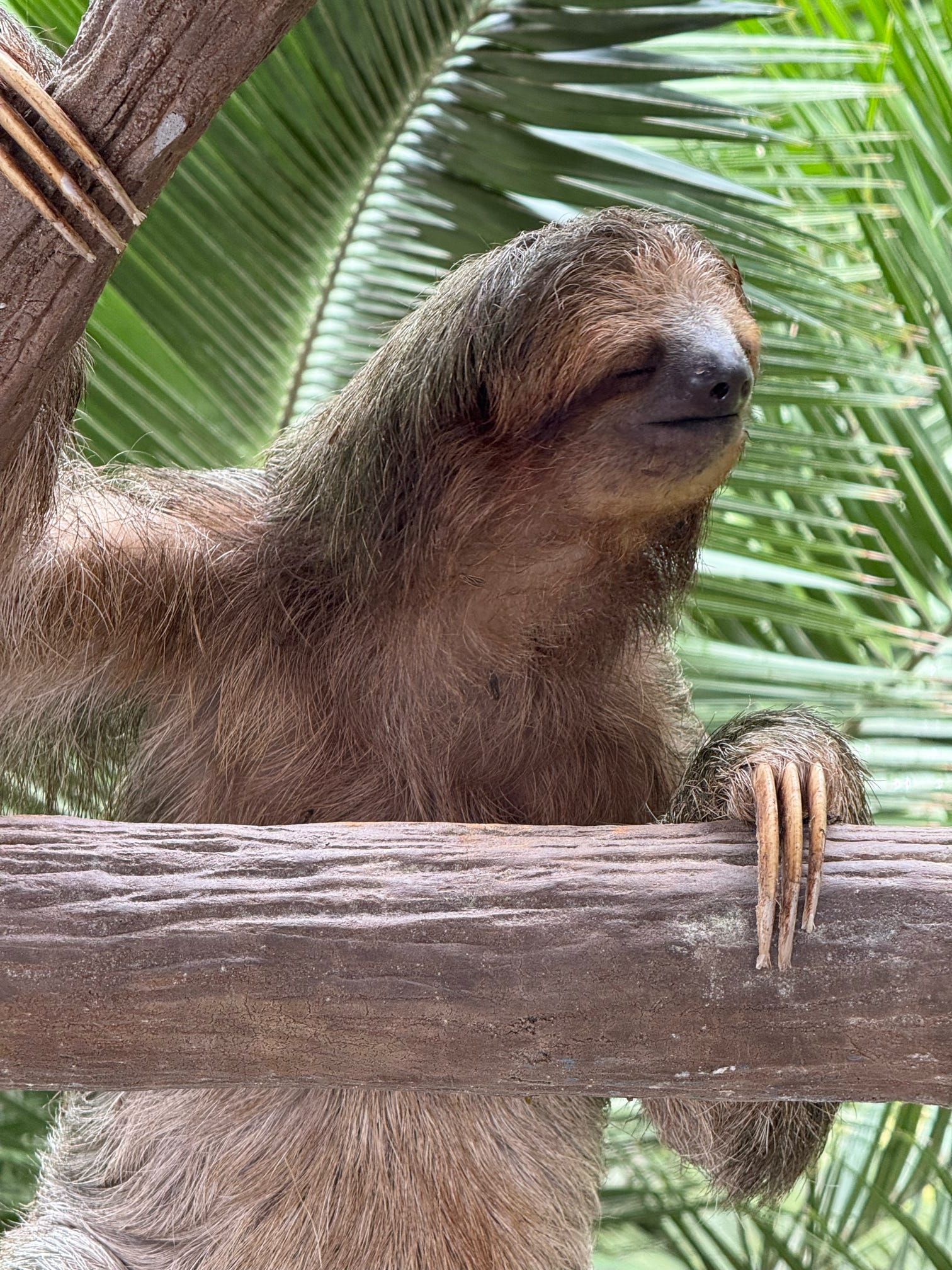 We were blessed with the presence of a female three-toed sloth just hanging out at one of our resorts. It is illegal to touch the wild sloths, but we were standing literally inches away from this gorgeous girl.