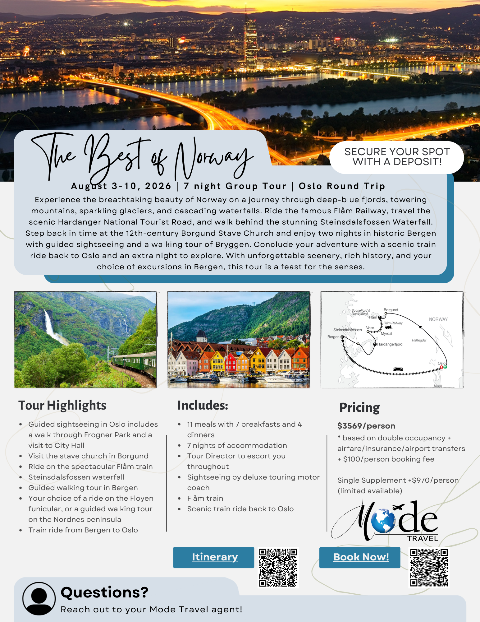 PLUS, your tour includes your choice of excursions in Bergen so you can plan your day your way.